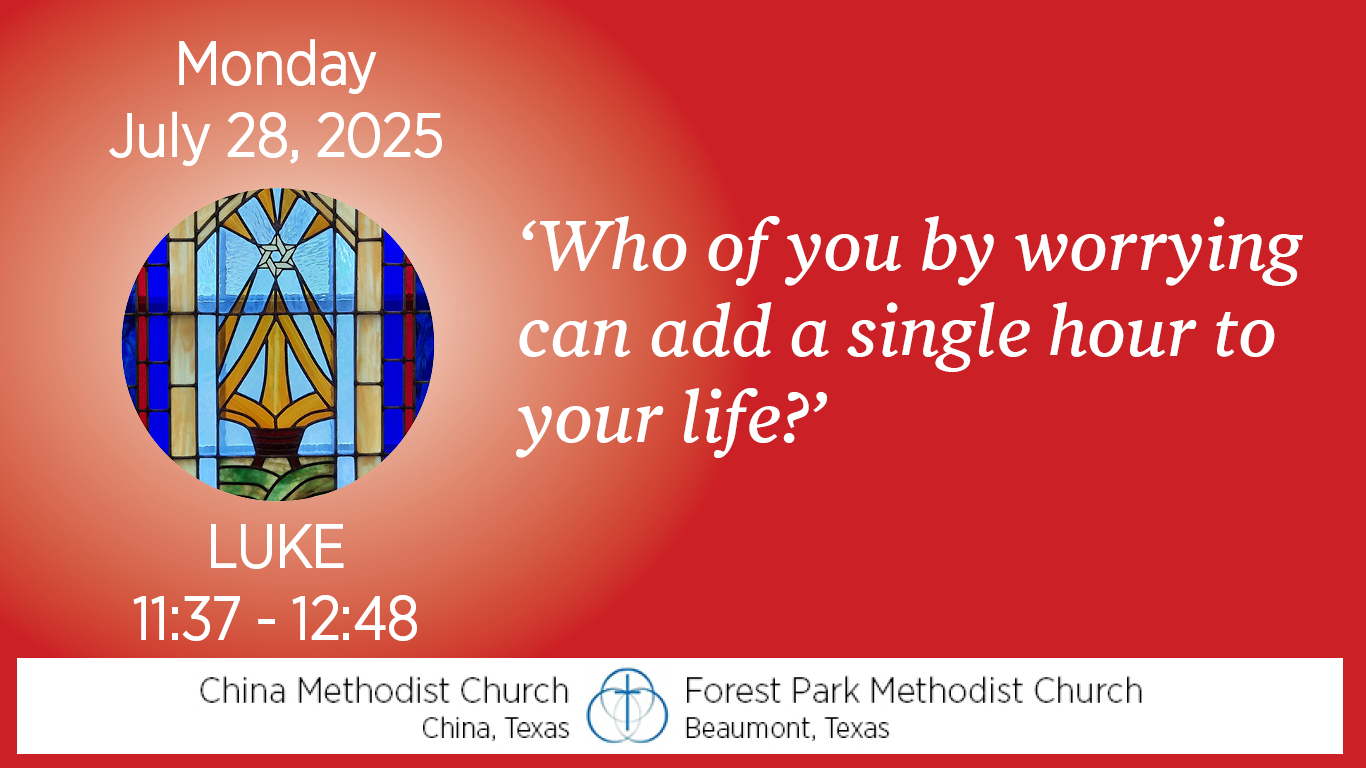 “Therefore I tell you, do not worry about your life, what you will eat; or about your body, what you will wear…. Who of you by worrying can add a single hour to your life?”