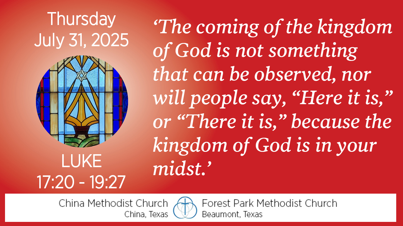 “The coming of the kingdom of God is not something that can be observed, nor will people say, ‘Here it is,’ or ‘There it is,’ because the kingdom of God is in your midst.”
