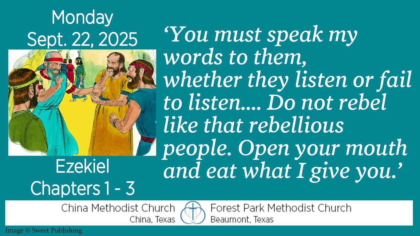 In 2:7-8 we read, “You must speak my words to them, whether they listen or fail to listen, for they are rebellious. But you, son of man, listen to what I say to you. Do not rebel like that rebellious people; open your mouth and eat what I give you.”