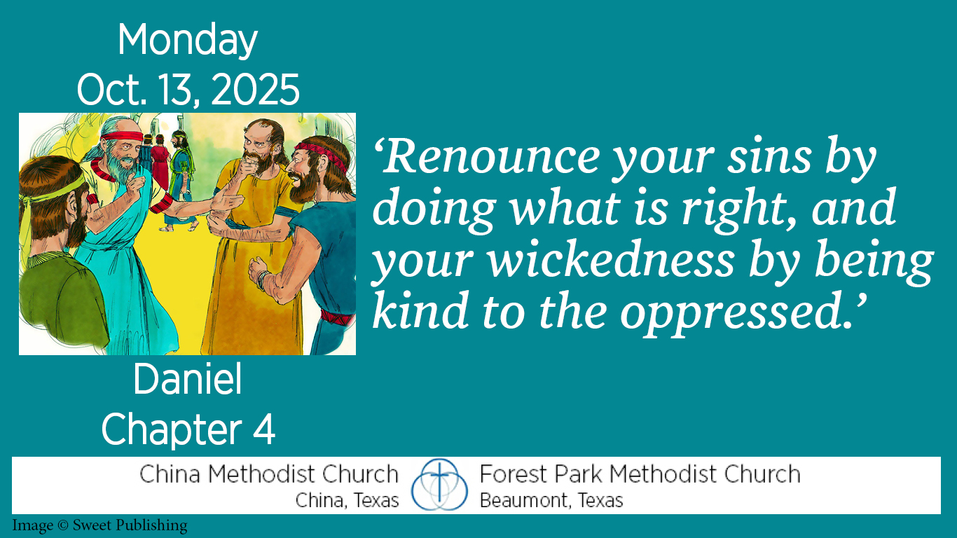 Daniel warns him, “Renounce your sins by doing what is right, and your wickedness by being kind to the oppressed.”