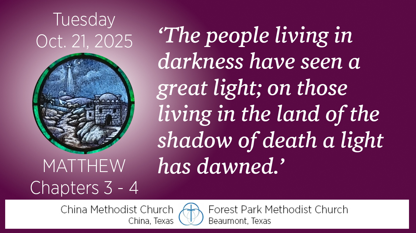 Two verses of today’s reading—3:2 and 4:17—contain exactly the same sentence: “Repent, for the kingdom of heaven has come near.” In the first instance it’s the essence of John’s message; in the second instance it’s the essence of Jesus’s message.