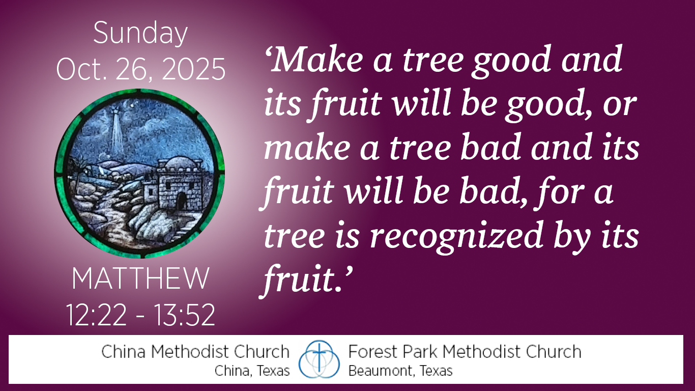 In 12:33 we read, “Make a tree good and its fruit will be good, or make a tree bad and its fruit will be bad, for a tree is recognized by its fruit.”