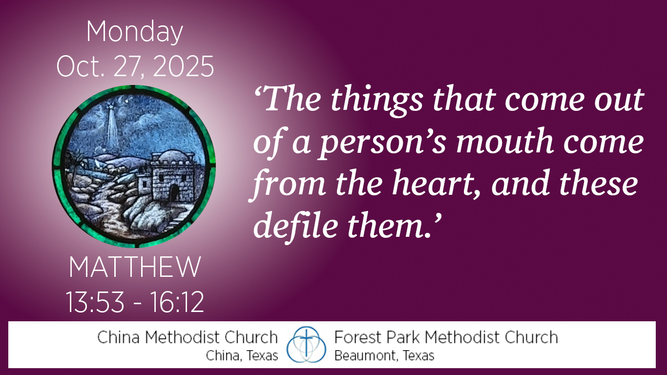 In one of the most explicit statements about this, he says in 15:11 that, “What goes into someone’s mouth does not defile them, but what comes out of their mouth, that it what defiles them.”