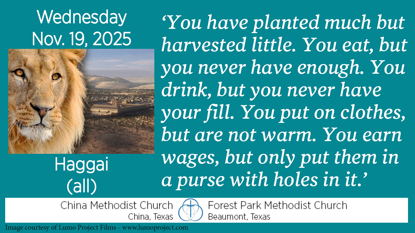 If some of the material in Haggai sounds familiar it is because we have seen the same era—the rebuilding of the Temple—in the book of Ezra. Our next book, Zechariah, will also overlap the same period. Both Haggai and Zecharia are mentioned in chapters 5 and 6 of Ezra.