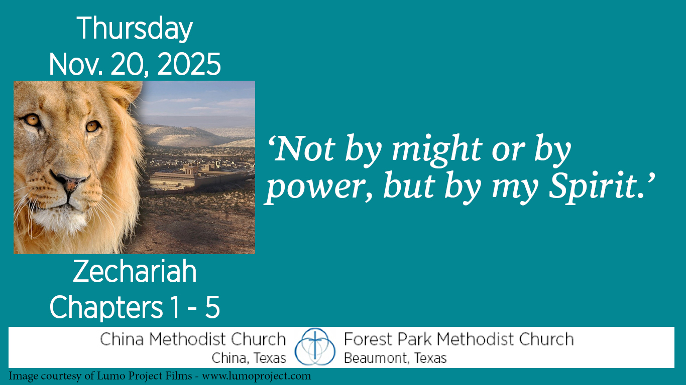 Zechariah is told that God will return to Jerusalem and his house will be rebuilt. It is Zerubbabel’s task to rebuild it. “This is the word of the Lord to Zerubbabel: ‘Not by might nor by power, but by my Spirit,’ says the Lord Almighty.”