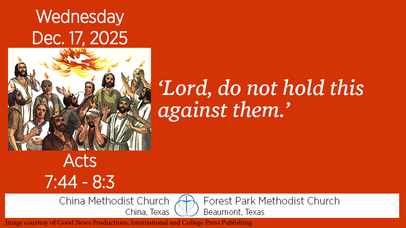 Today we read the conclusion of the defense he made against the charge of preaching Christ—actually a sermon itself. As a defense, it fails badly, as it leads to Stephen being stoned to death—the first Christian martyr.