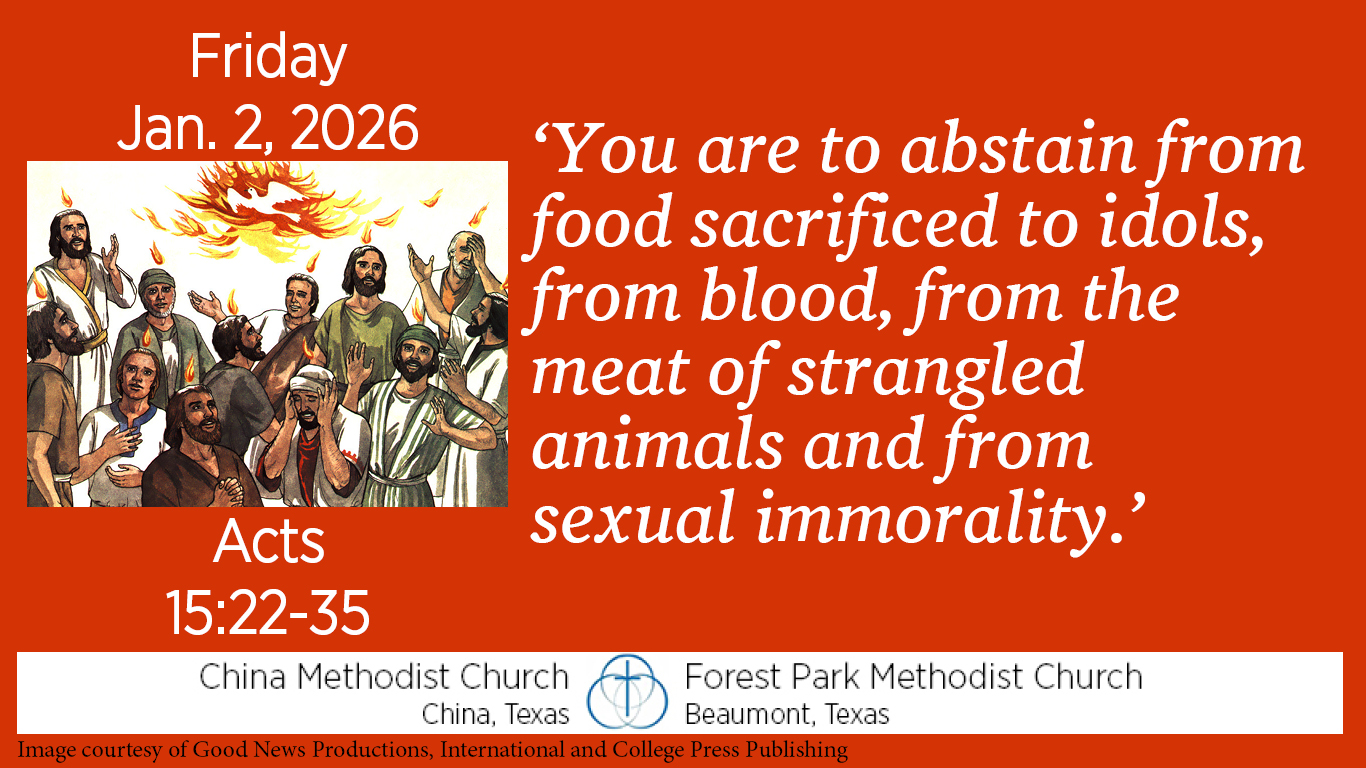 It advises the new believers to abstain from sexual immorality and to obey some parts of the dietary law: “You are to abstain from food sacrificed to idols, from blood, from the meat of strangled animals and from sexual immorality. You will do well to avoid these things.”