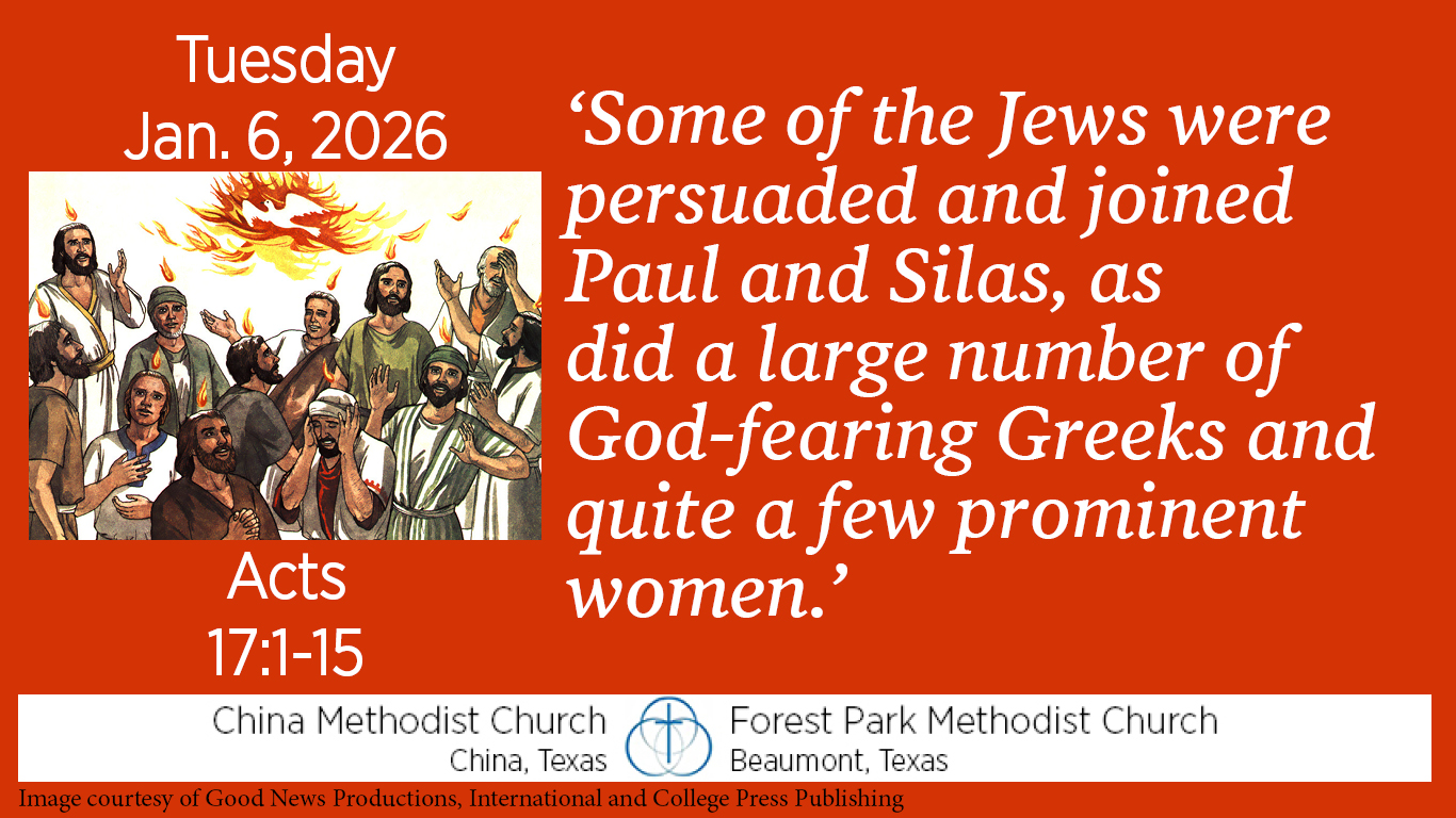 These stops at Thessalonica and Berea seem to be typical of Paul’s strategy in this phase of his ministry. He goes to a town and preaches in the synagogue, drawing his earliest converts from among those who who are already worshiping God. “Some of the Jews were persuaded and joined Paul and Silas, as did a large number of God-fearing Greeks and quite a few prominent women.”