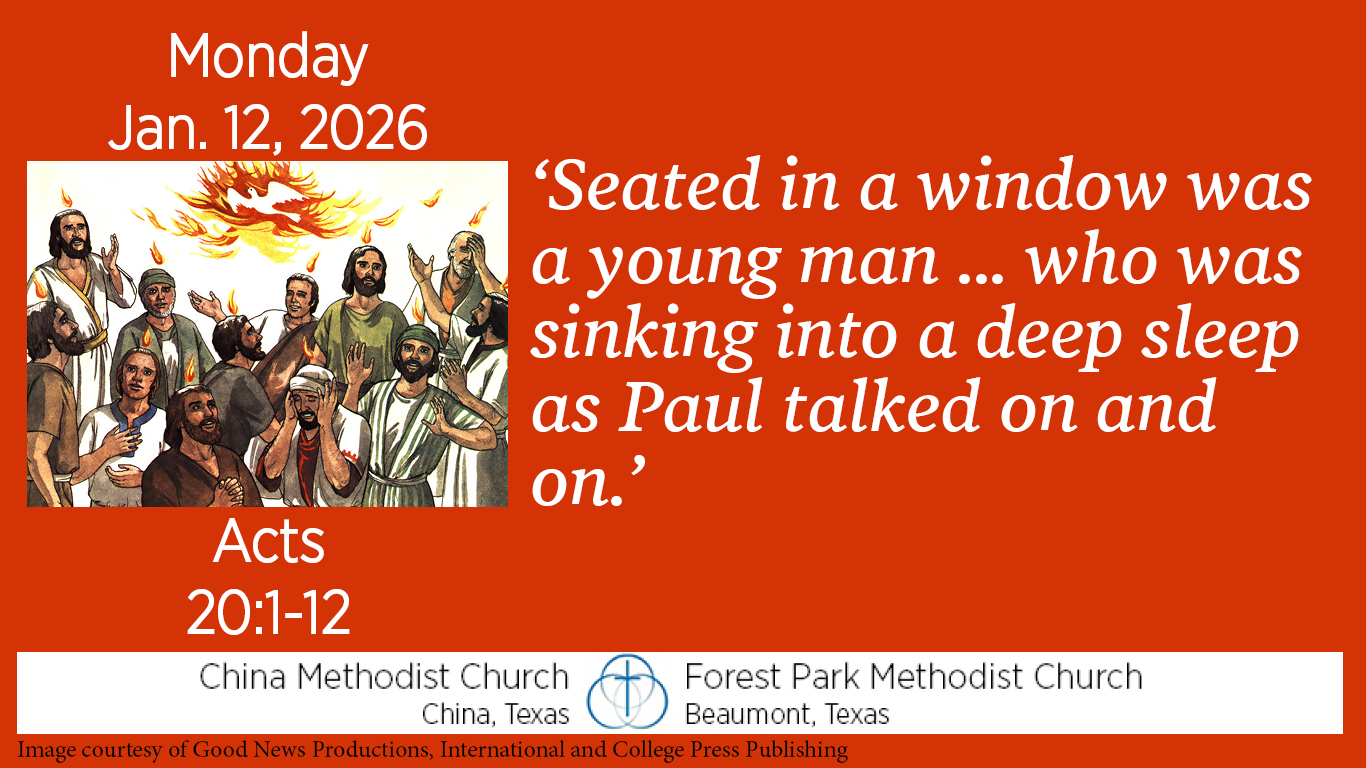 When Paul is near the end of his visit to Troas, he preaches late into the night. Many lamps are lit and presumably the room is warm. “Seated in a window was a young man named Eutychus, who was sinking into a deep sleep as Paul talked on and on. When he was sound asleep, he fell to the ground from the third story and was picked up dead.”
