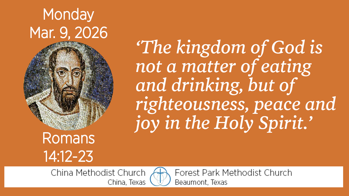 Other things are more important. Paul says, “For the kingdom of God is not a matter of eating and drinking, but of righteousness, peace and joy in the Holy Spirit, because anyone who serves Christ in this way is pleasing to God and receives human approval.”