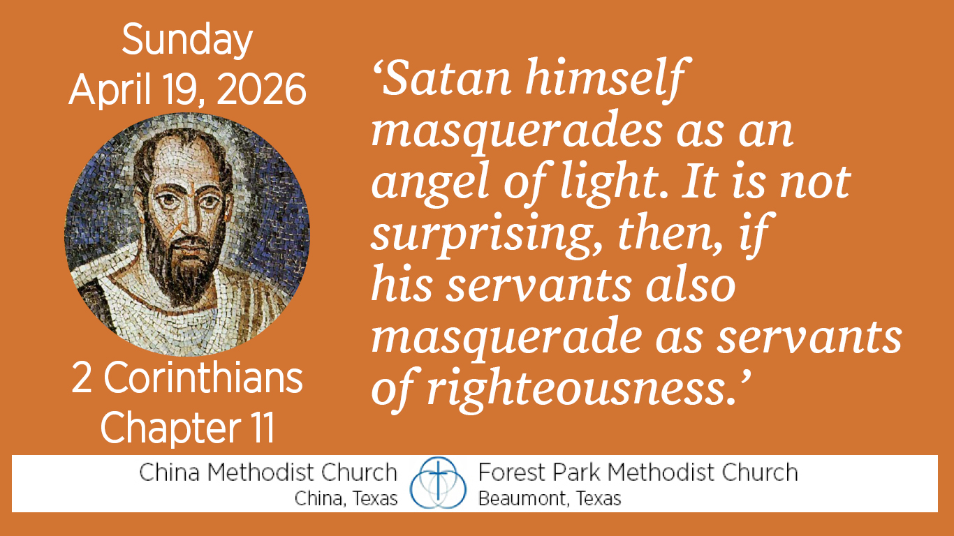 But his ministry will continue: “And I will keep on doing what I am doing in order to cut the ground from under those who want an opportunity to be considered equal with us in the things they boast about. For such people are false apostles, deceitful workers, masquerading as apostles of Christ. And no wonder, for Satan himself masquerades as an angel of light. It is not surprising then, if his servants also masquerade as servants of righteousness. Their end will be what their actions deserve.”